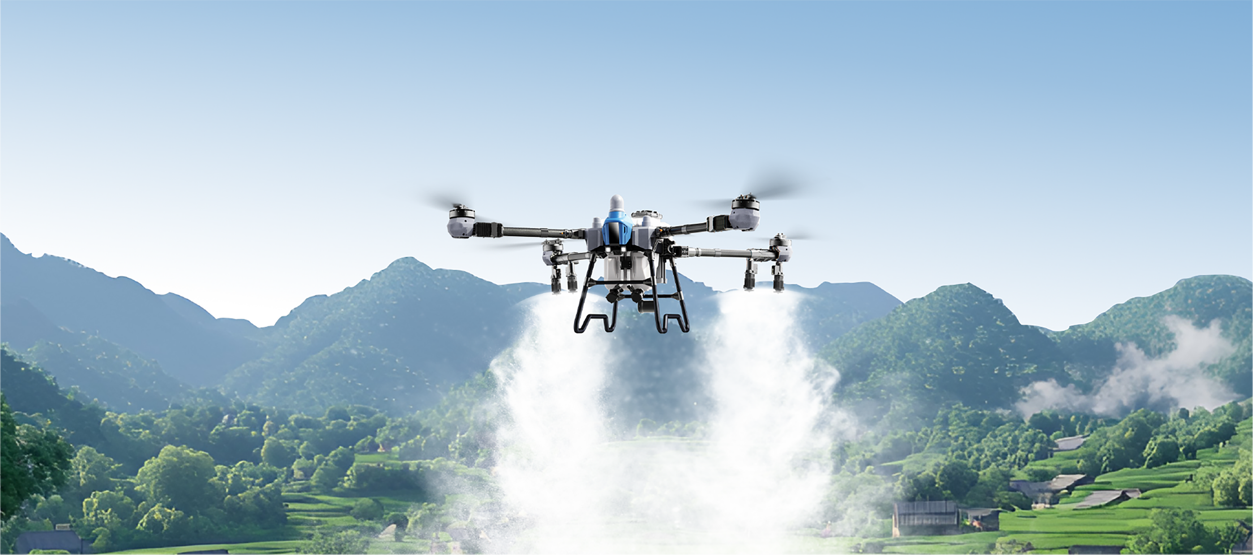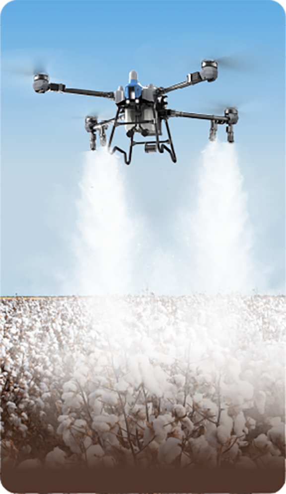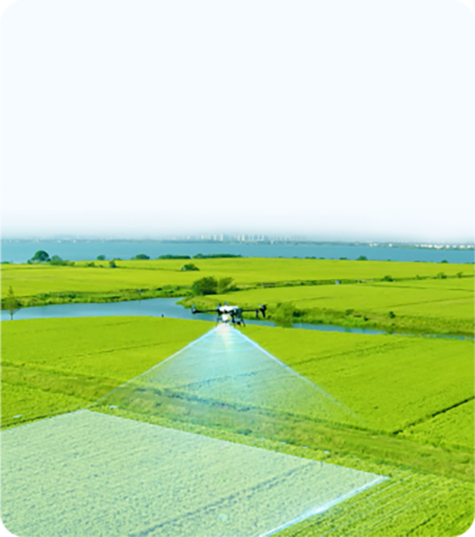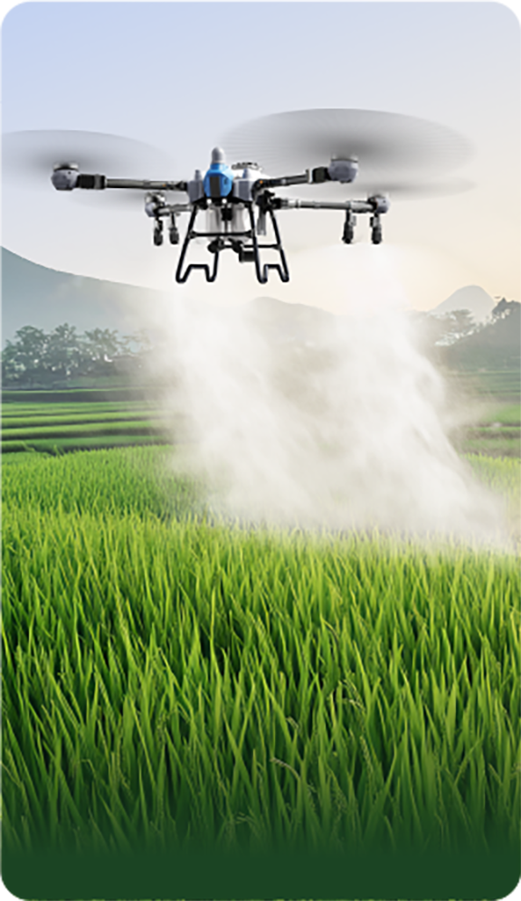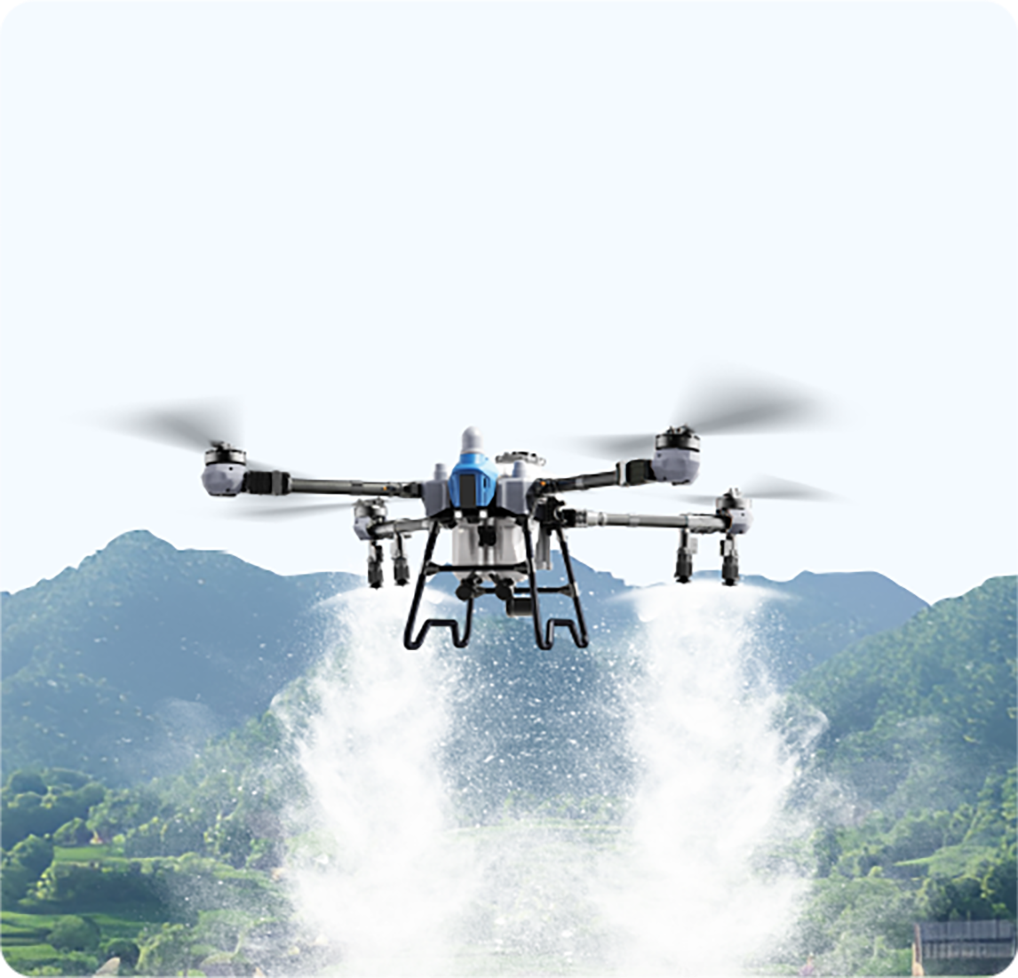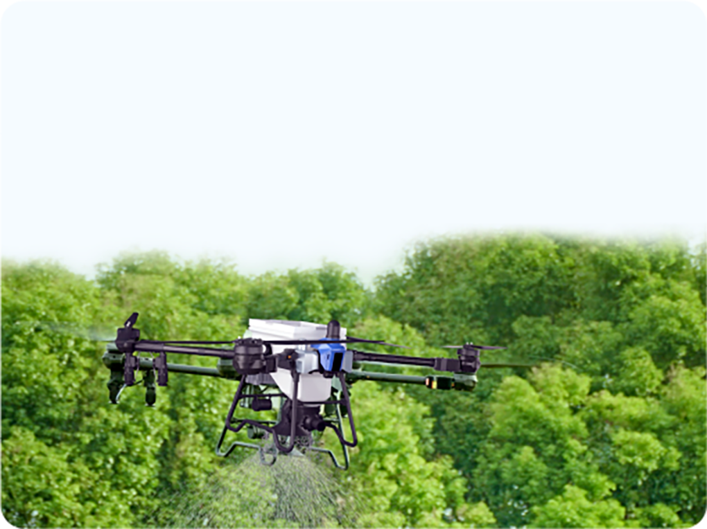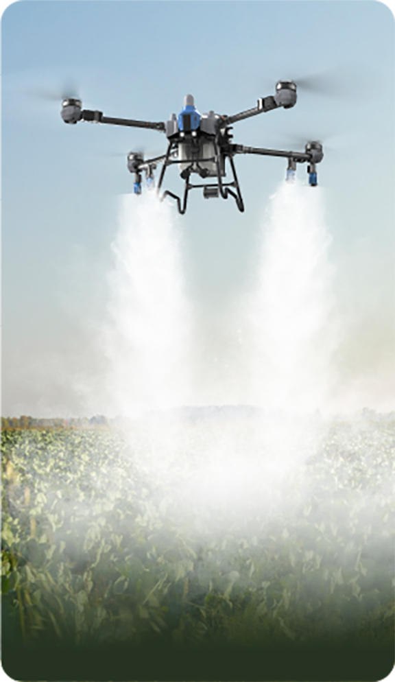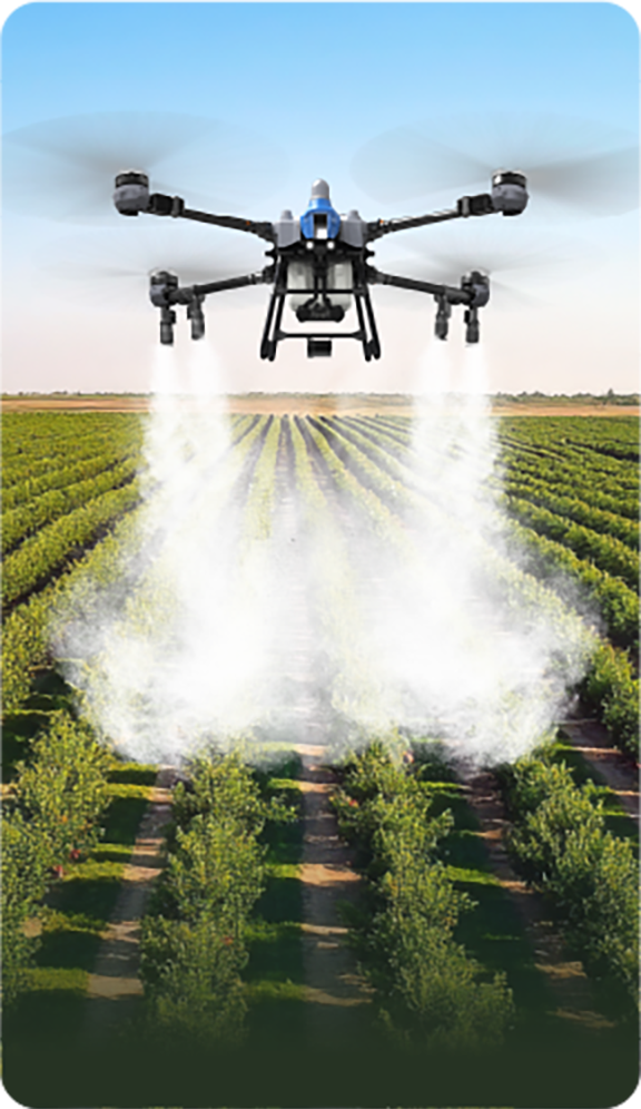 Cuatro tamaños de gota en un solo vuelo, con cada boquilla ajustable entre 10 y 300 μm. Las gotas más grandes cubren uniformemente la superficie de las hojas, mientras que las más pequeñas penetran completamente el envés del dosel. La niebla de gotas mixtas y el flujo de aire en vórtice descendente crean un campo de pulverización multidireccional y multicapa, logrando una cobertura completa desde el dosel hasta el núcleo.
